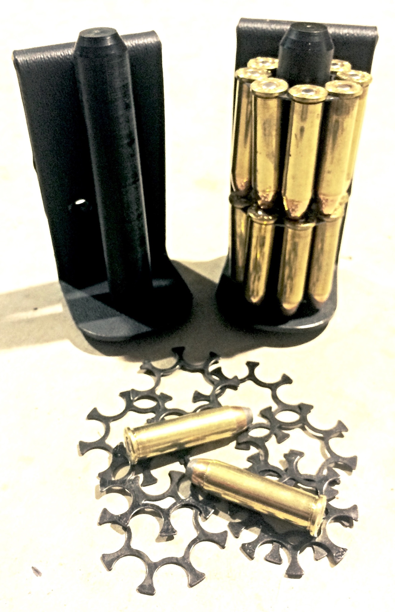 If you have cartridges with a longer over all length (38 Special & 357 Magnum) this Tall Holder will hold your loaded moon clips perfectly.